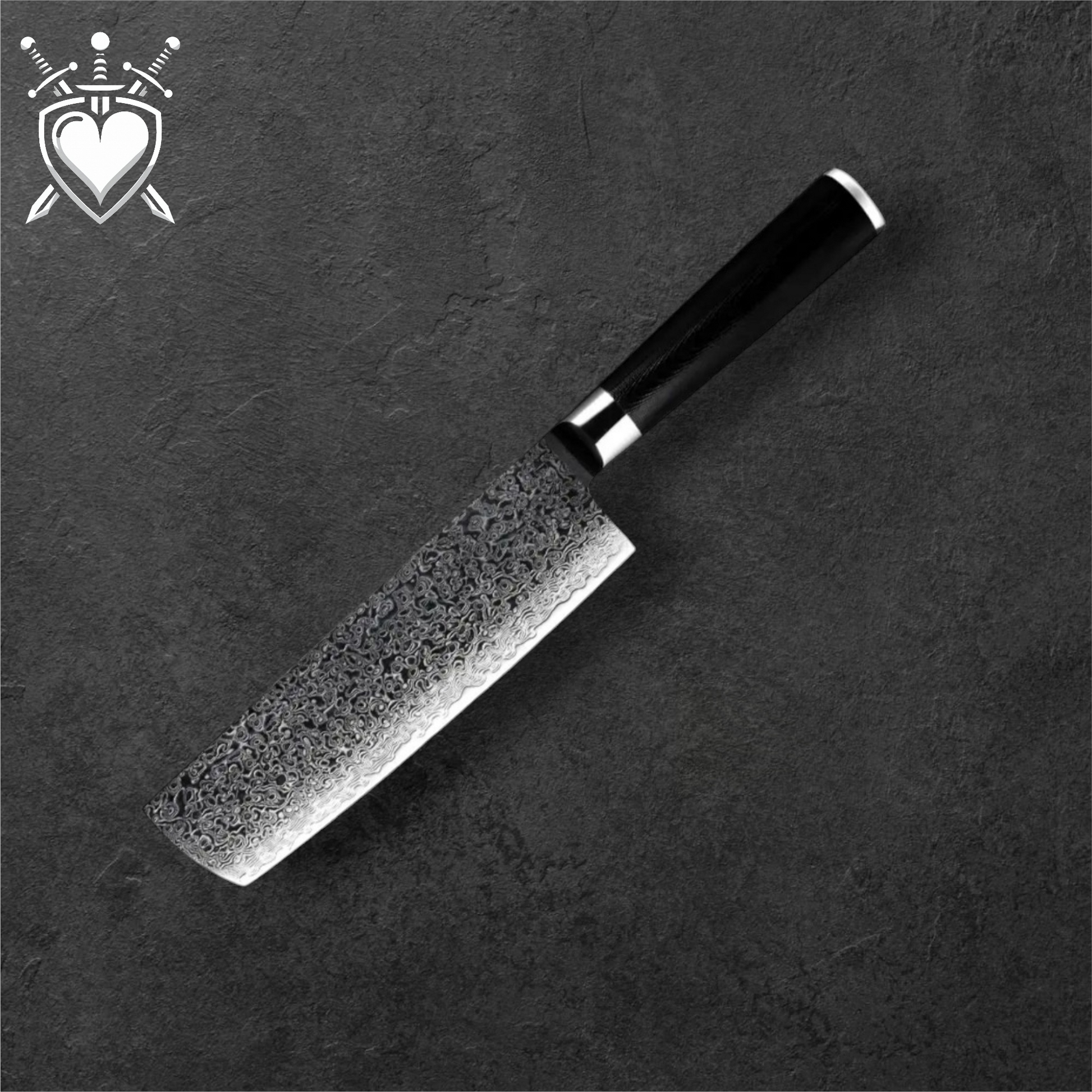 Questo set esclusivo di coltelli include i modelli Nakiri, Kiritsuke, Gyuto, Santoku, Petty e Coltello per Disosso, ideali per chef professionisti e appassionati di cucina. Ogni coltello è realizzato in acciaio di Damasco a 67 strati, noto per la sua incredibile resistenza, affilatura e durata, garantendo un taglio preciso e senza sforzo.