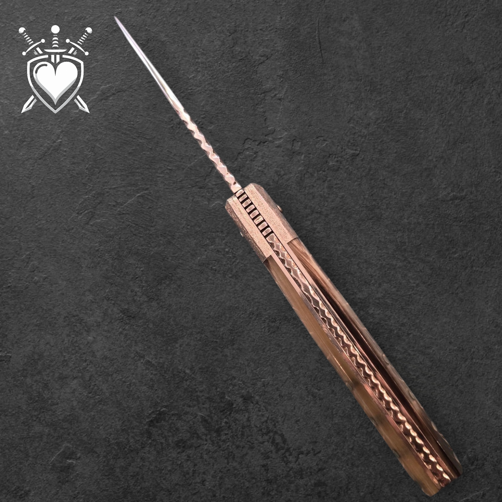 Manico: Realizzato in pregiato corno di montone, lavorato con cura per esaltare le venature naturali e conferire unicità a ogni pezzo.